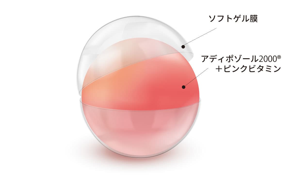 主成分:アディポゾール2000、シアノコバラミン(ピンクビタミン)、6種ヒアルロン酸、ユビキノン(コエンザイムQ10)、カムグリーン、コジルカルボキシジペプチド-23、タカサブロウエキス、ツボクサエキス、ワサビノキ種子油