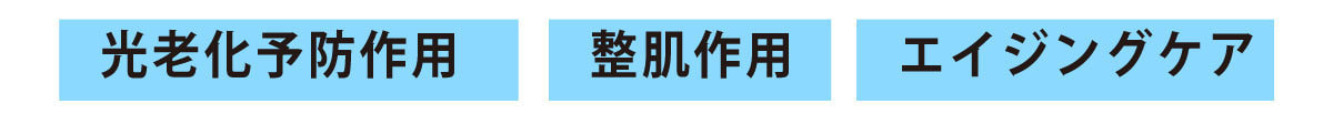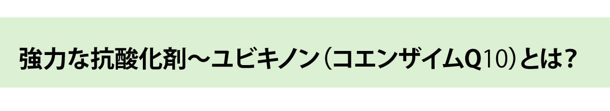 また、ユビキノン(コエンザイムQ )には、血行を促進する作用もあり、化粧品成分としては、くすみ、小ジワ、ほうれい線などの肌老化の予防が期待されています。